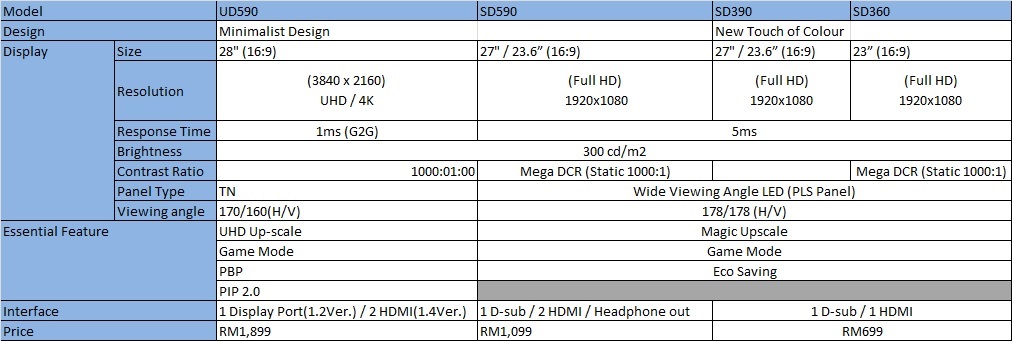 Lastly, two extra monitors that Samsung introduced are the Full HD SD390 and SD360 both priced at RM699 which is indeed cheap for a newly released monitor. For the SD390, there are two sizes, 27″ and 23.6″ while the SD360 is sized at 23″. These monitors have only single HDMI port while the UD590 UHD monitor has 2 HDMI ports, which can be handy at times.