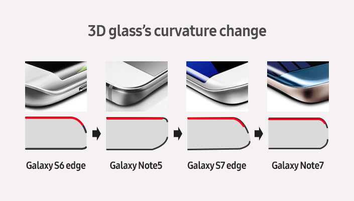 The Galaxy Note7 is the first in the Galaxy Note series to boast a dual-edge display—an addition that stays true to Samsung’s design heritage. To incorporate this elegant aesthetic, Samsung had to find a way to maintain a flat screen surface for writing, while also ensuring enough space for storing the S Pen.