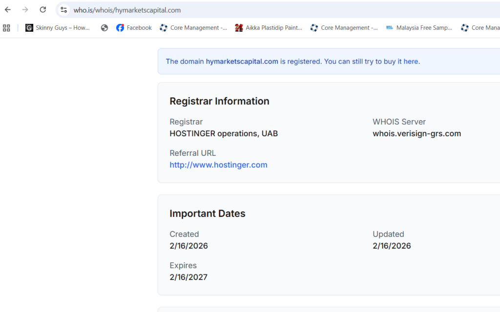 hymarketscapital.com does NOT appear to be a legitimate regulated broker.