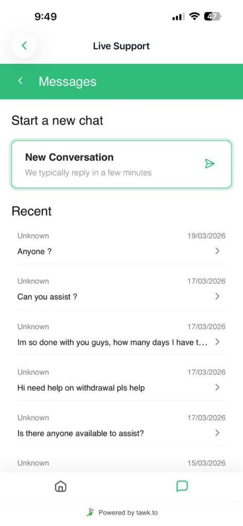 The withdrawal was never processed, and the support team never responded.